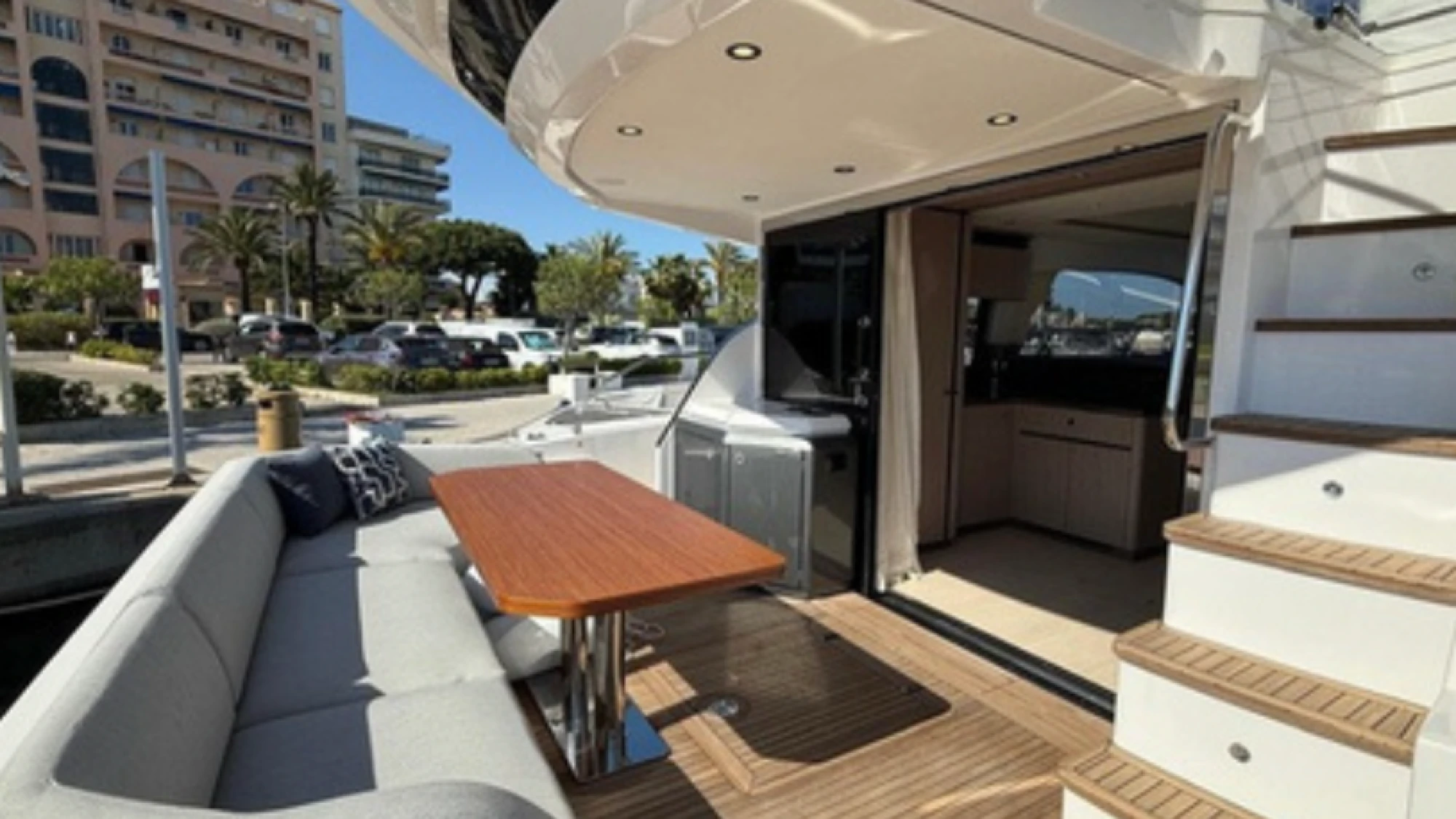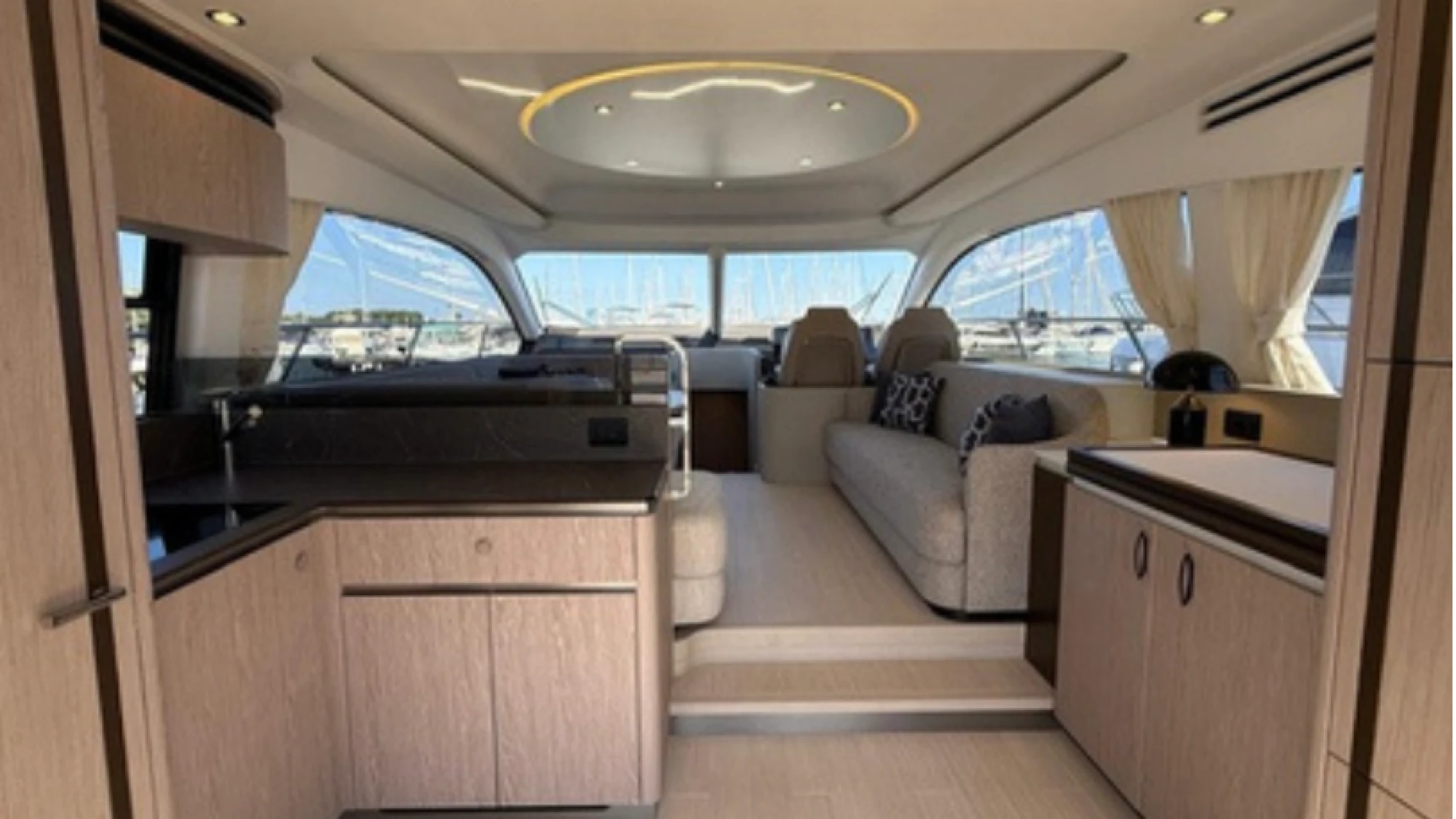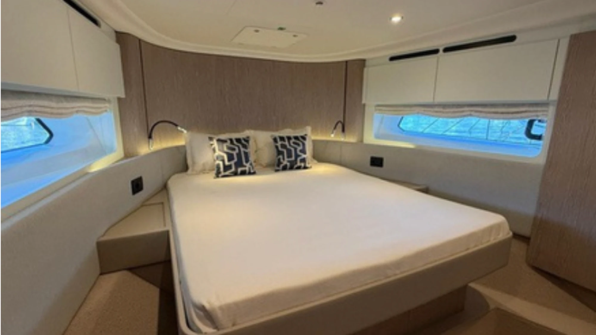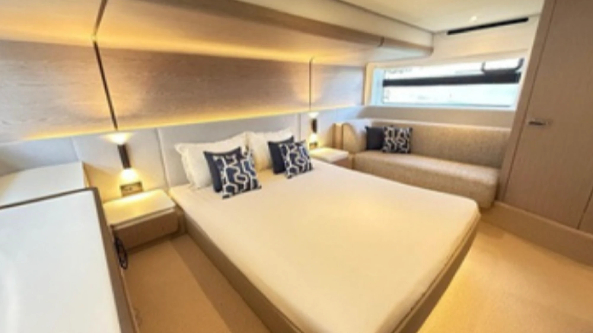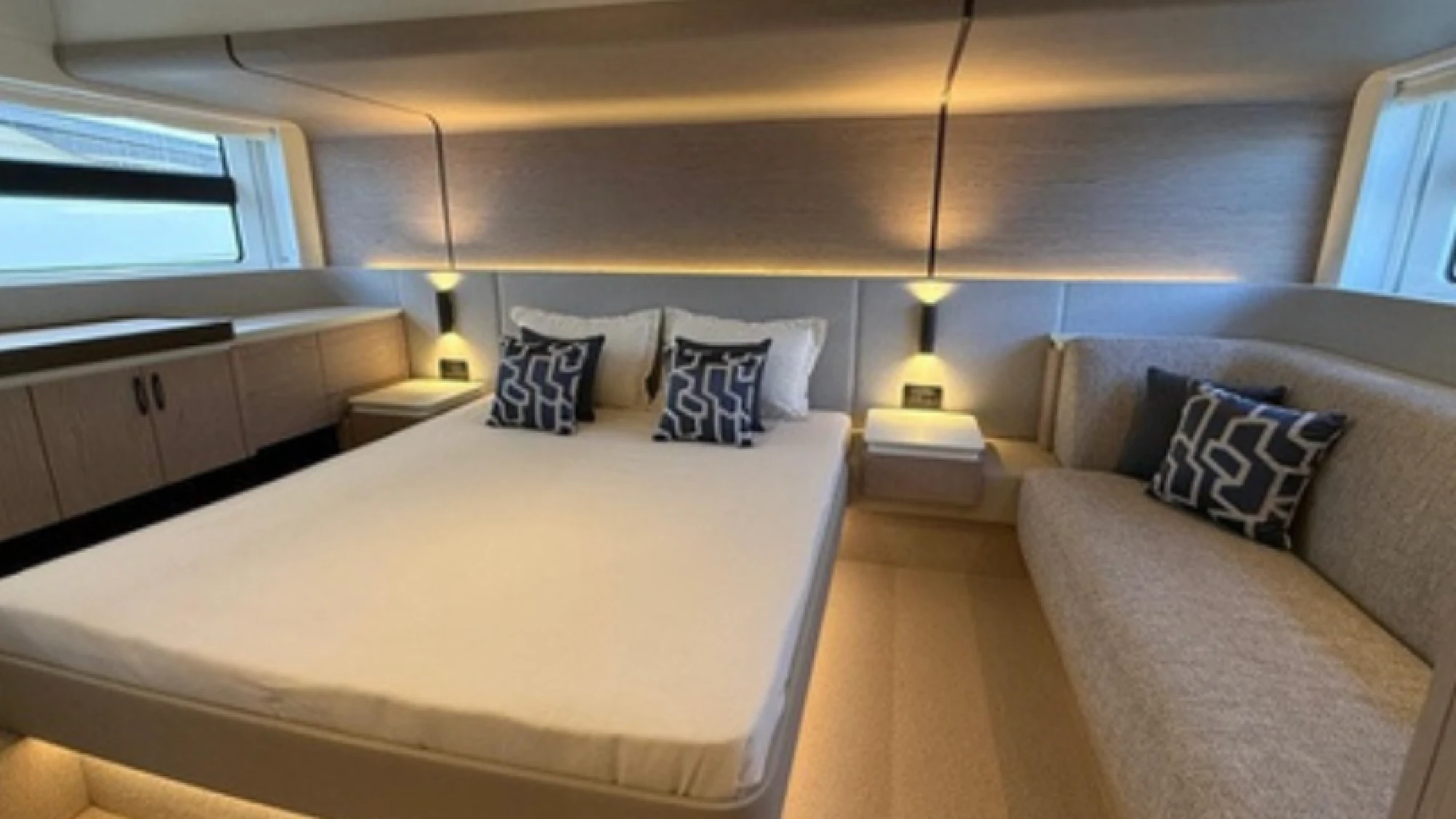 The Azimut 53 features sleek, aerodynamic exterior lines and a spacious flybridge that offers panoramic views, generous seating, and a sunbathing area ideal for entertaining. Inside, the yacht showcases contemporary interiors with premium finishes, abundant natural light through expansive windows, and a smart layout that maximizes every inch of space.