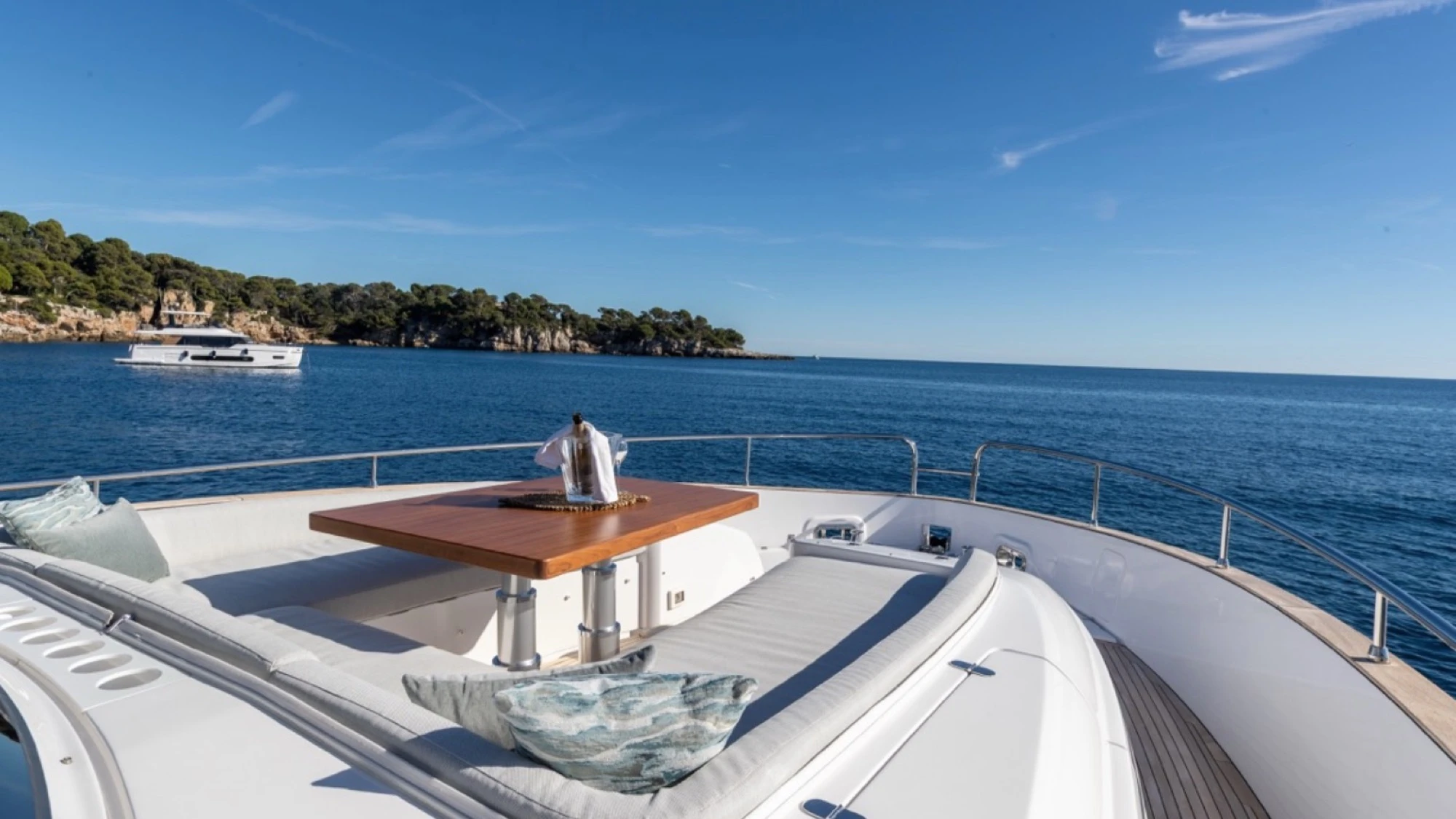 Performance & Stability: Powered by 2x 850 CV MAN I6 engines (Shaft Line) and equipped with a Seakeeper NG16stabilizer, this yacht ensures a smooth ride. It is also designed for autonomy with a double generator setup.