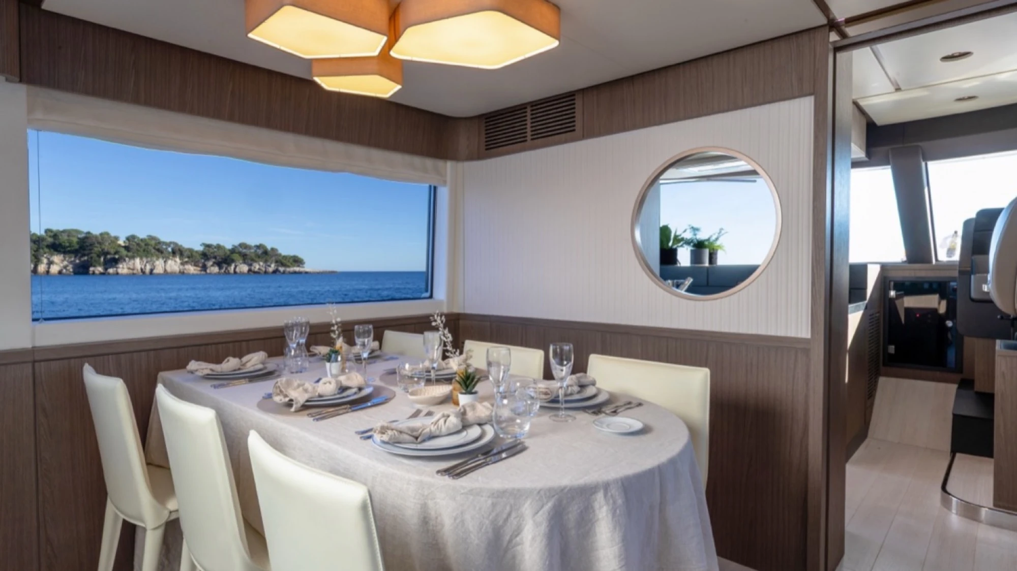 Navetta Version: This unit features the exclusive "Navetta" layout, offering a separated galley and helm station for maximum privacy and functionality during long cruises.